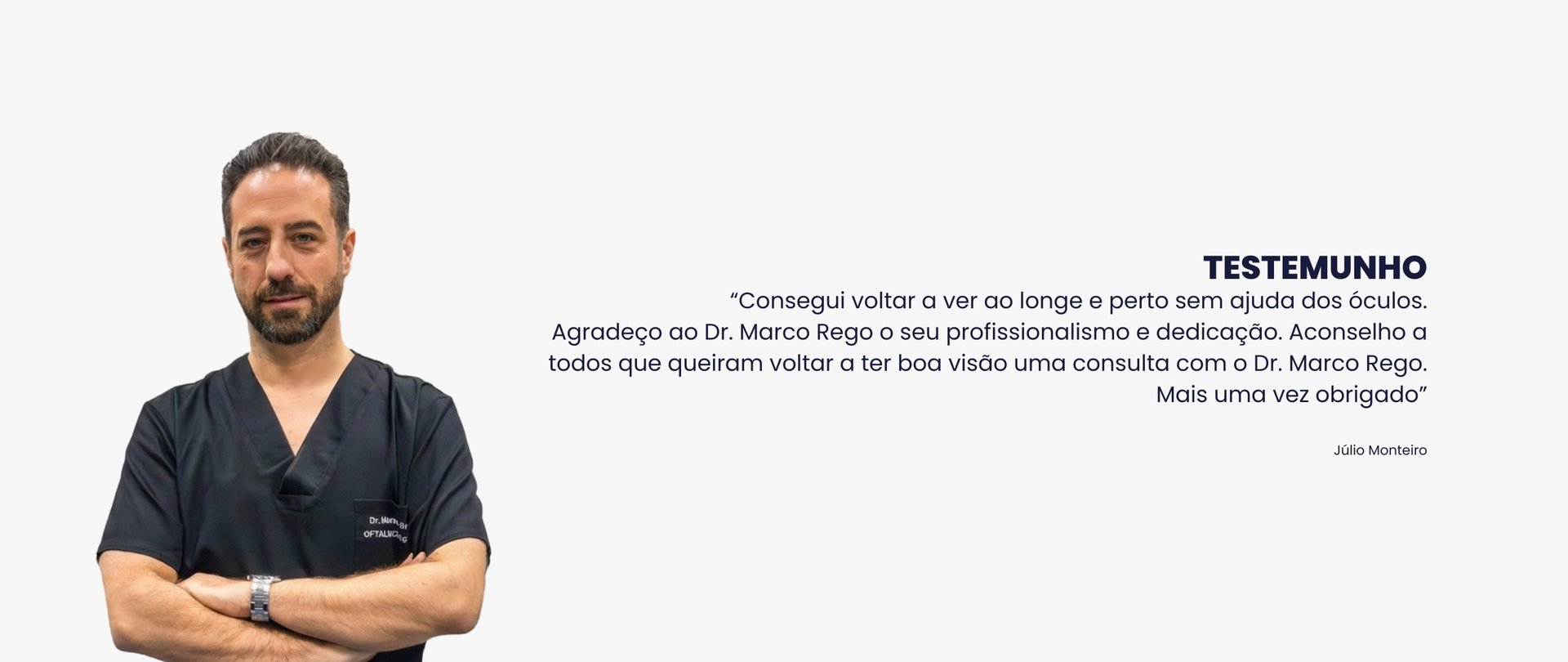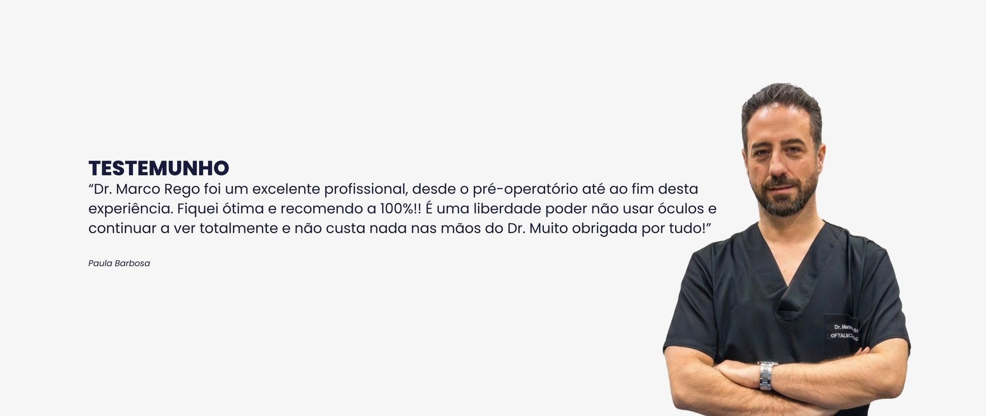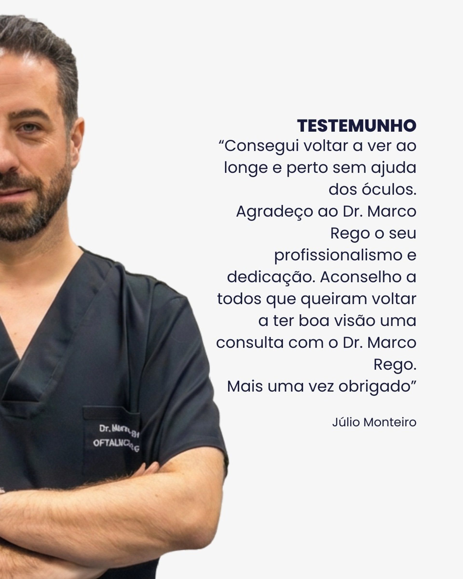 "Só tenho uma palavra . Obrigado. A experiência é muito boa desde o atendimento ao ato cirúrgico e recuperação rápida e indolor. Equipe simpática profissional e extremamente eficiente. Recomendo especialmente o Dr. Marco Rego e a sua equipe . Visita ao Porto é obrigatória para mudar a sua vida. Muito obrigado."